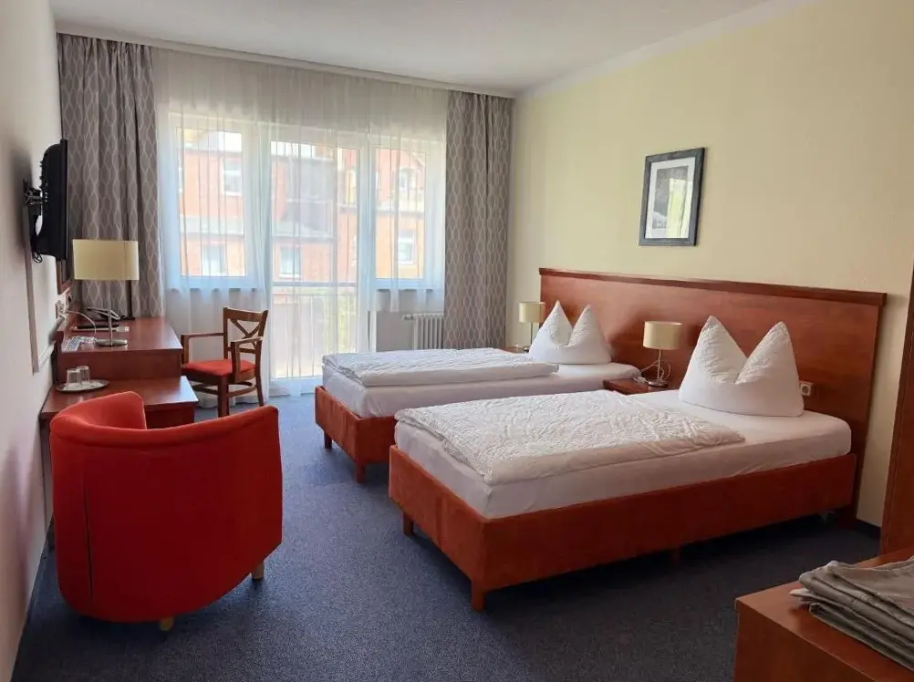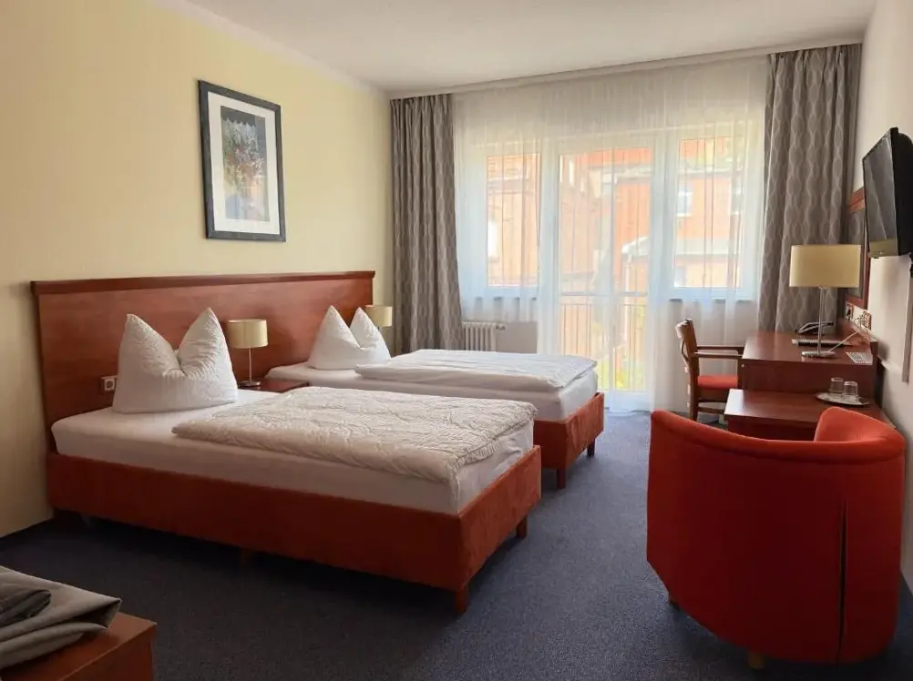 More information about Hotel am Hafen HavelbergPension an der Havel in Havelberg provides comfortable accommodations featuring family rooms equipped with private bathrooms, city and river views, and soundproofing. Rooms include refrigerators, wardrobes, and complimentary toiletries. Guests have access to outdoor spaces like a sun terrace and garden with seating areas for relaxation.