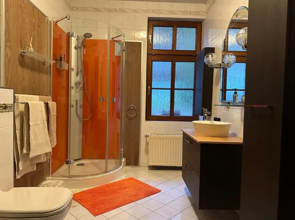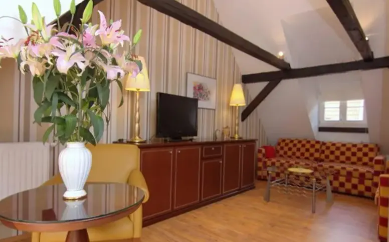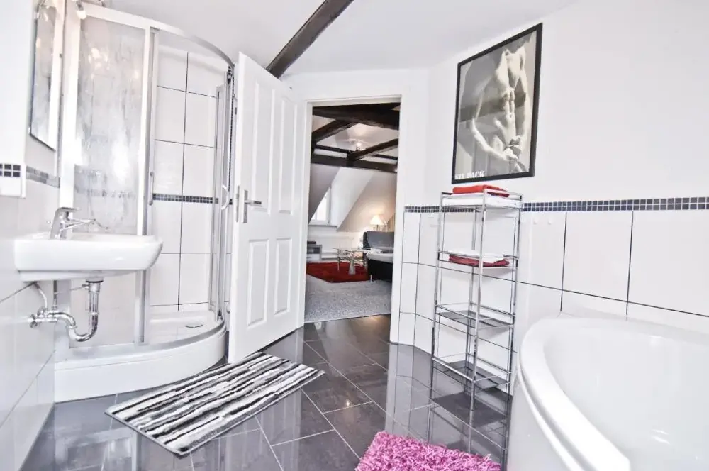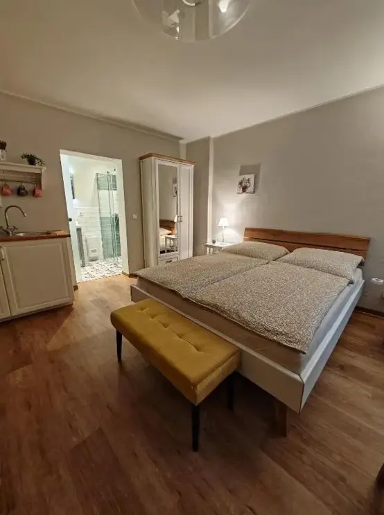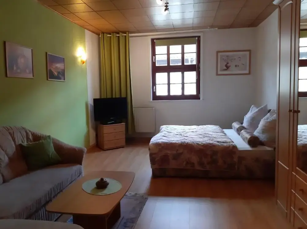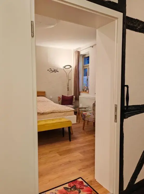 More information about Hotel & Spa Suiten FreiWerkFerienwohnungen im Harz in Neustadt 5, 06536 Stolberg (Harz), Germany offers a distinctive stay within a historic building. Guests have access to a private entrance and can enjoy views of an inner courtyard. The accommodations feature modern comforts including free WiFi, a fully equipped kitchenette, and a private bathroom with a walk-in shower.