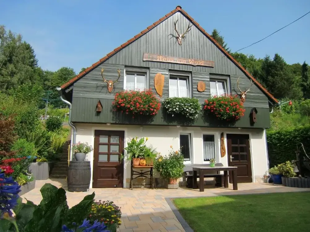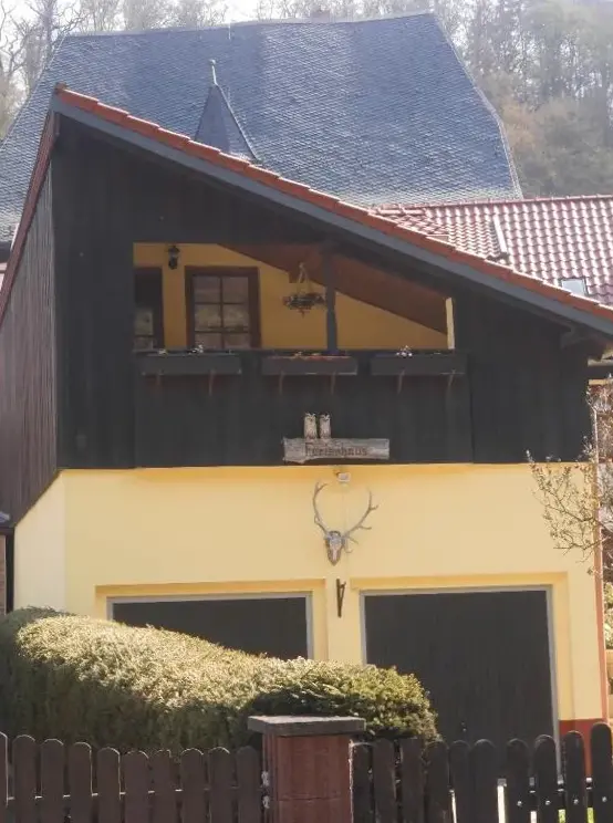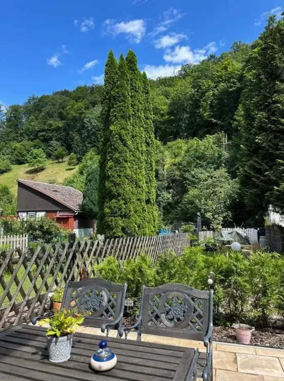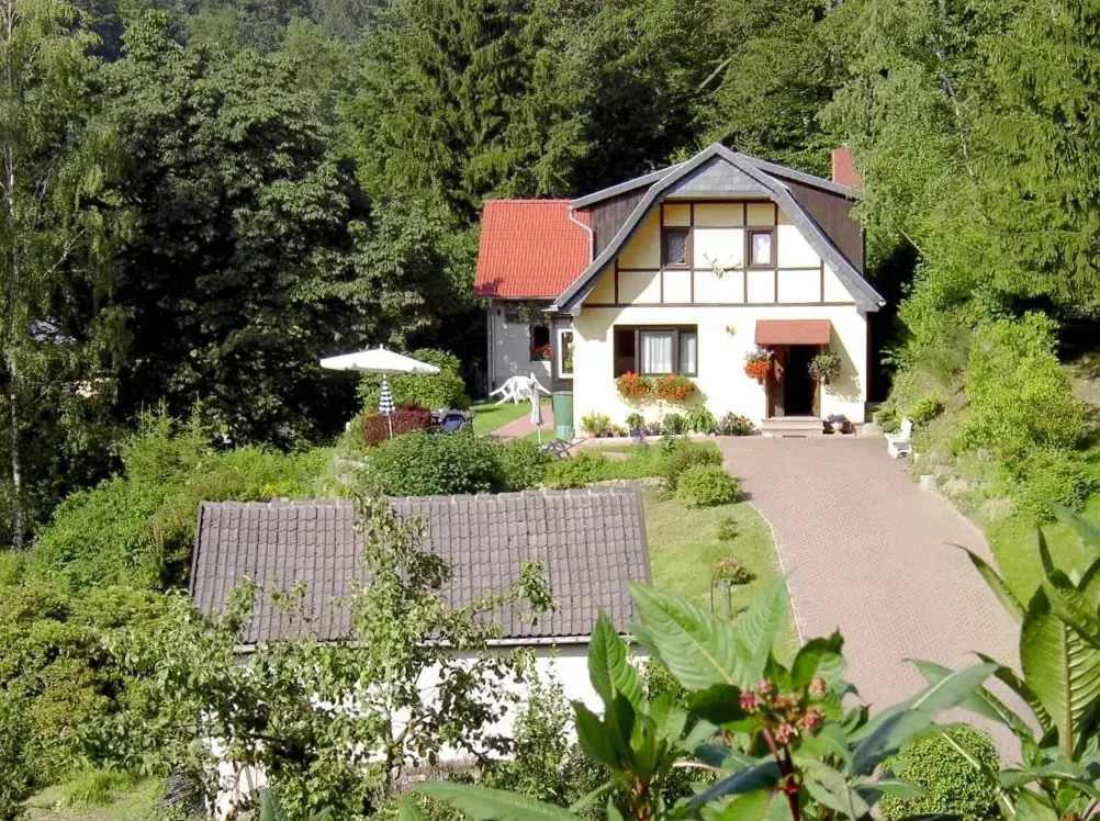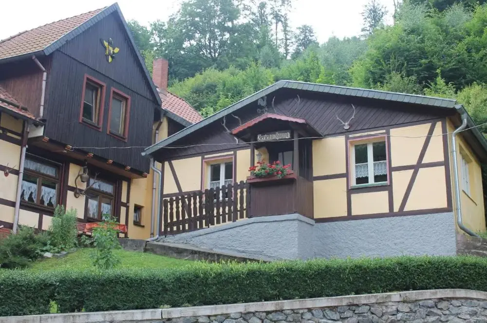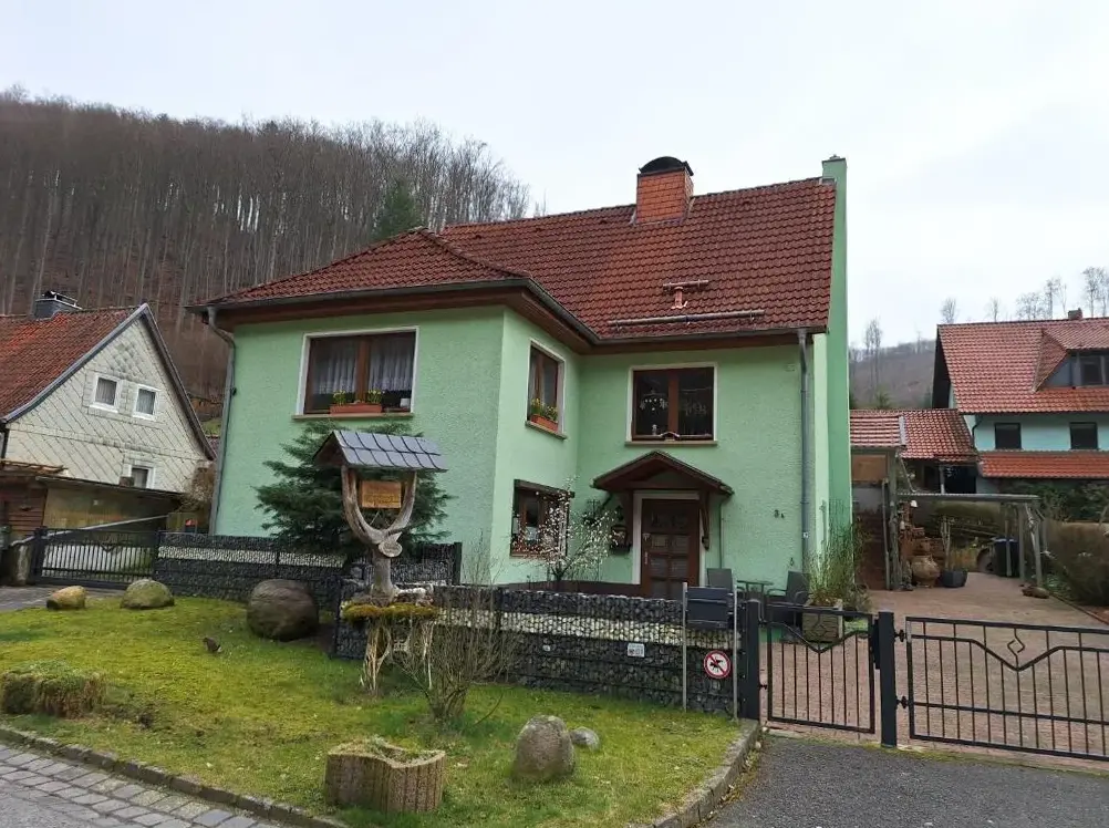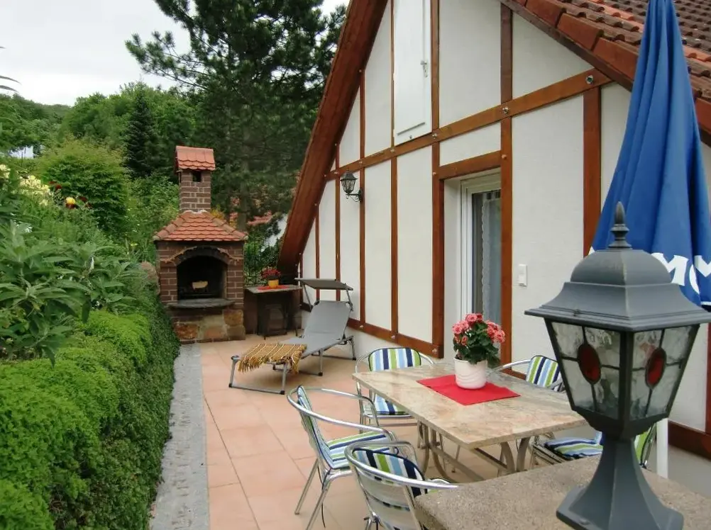 More information about FeWo ,,An der kleinen Wilde''Ferienhaus Haus am Wald in Stolberg i. Harz provides a comfortable retreat featuring a sun terrace, garden, and free WiFi. The property boasts a range of amenities including a paid shuttle service, outdoor fireplace, seating areas, picnic spots, family rooms, bicycle rentals, and barbecue facilities.