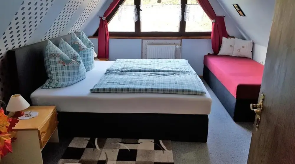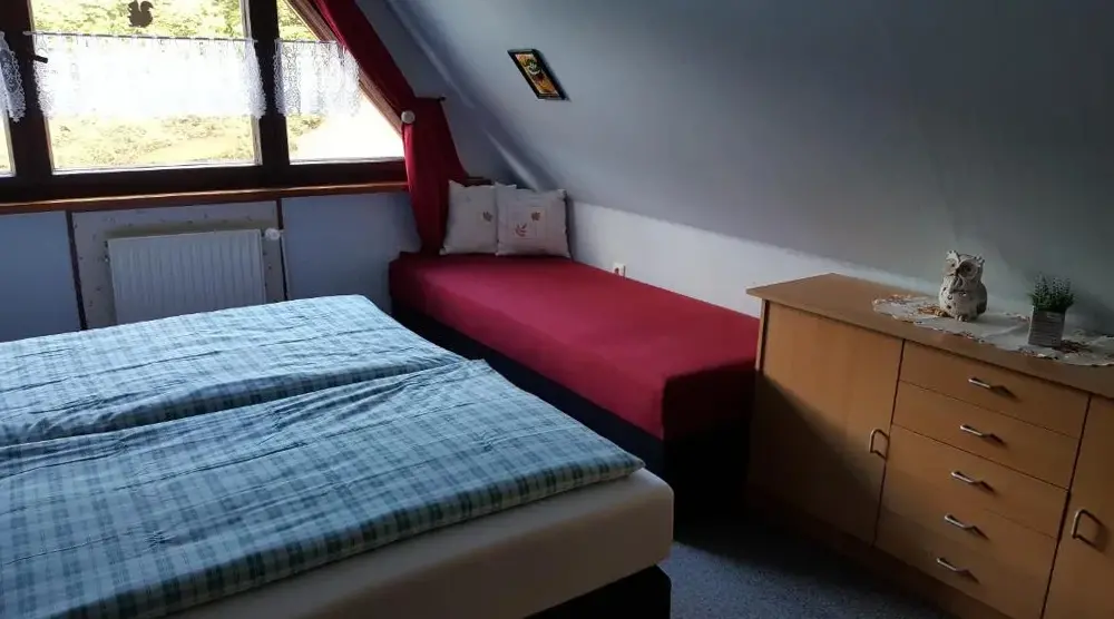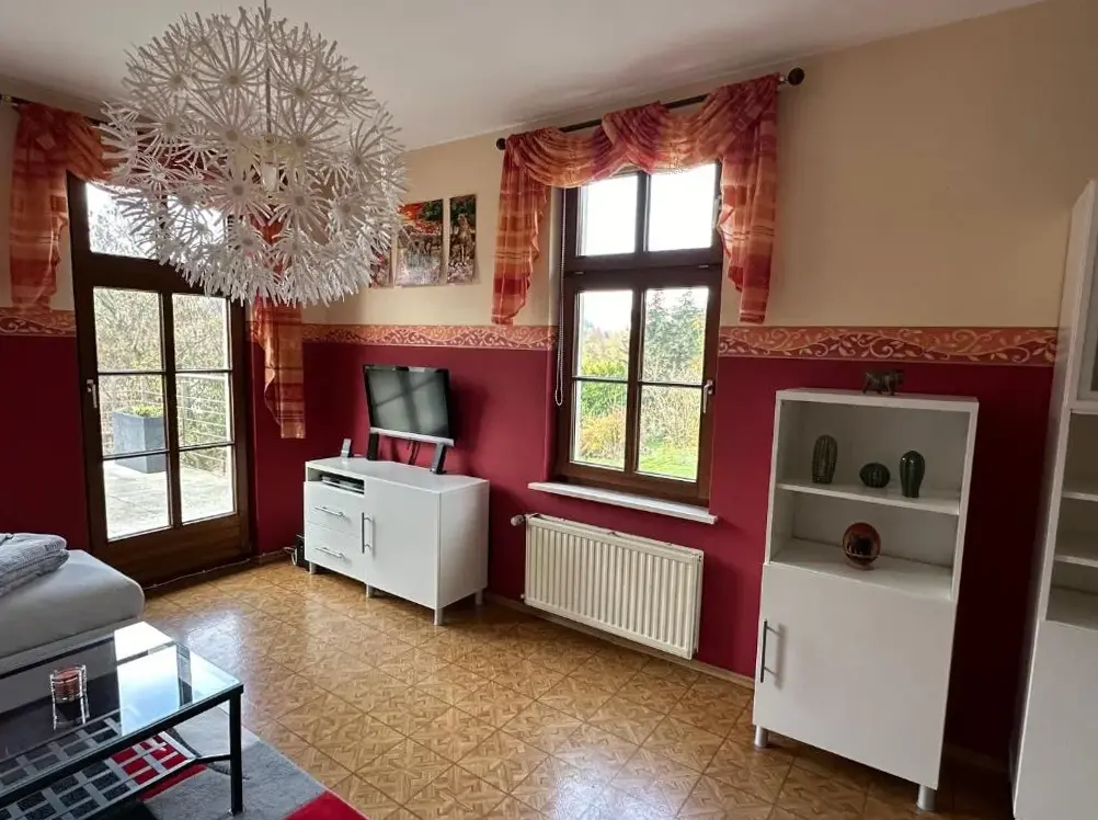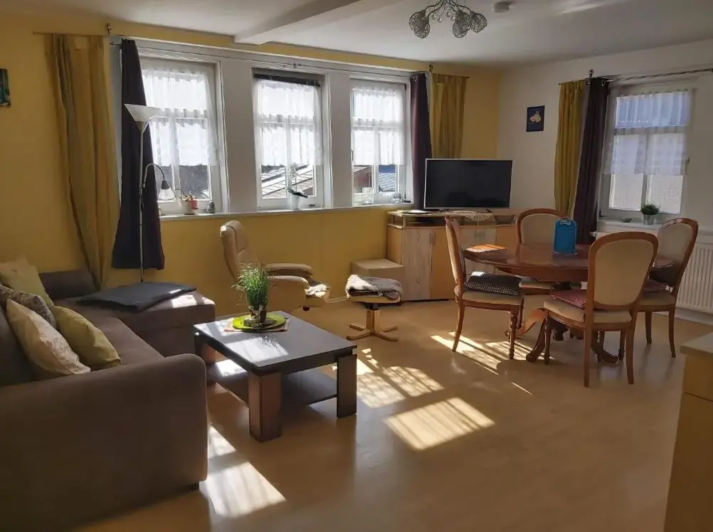 More information about Alte PosthaltereiFerienwohnung Blick Thyratal Obergeschoss in Stolberg i. Harz provides a spacious apartment featuring three bedrooms and a living room. The property includes a balcony, terrace, and garden for outdoor enjoyment. Modern amenities like free WiFi, a sauna, and a fully equipped kitchen with dishwasher and coffee maker enhance guest experience.