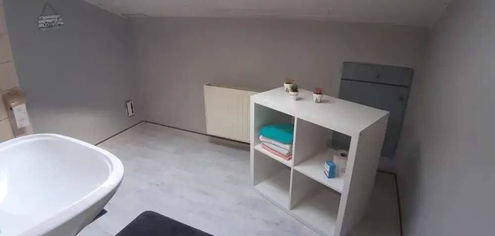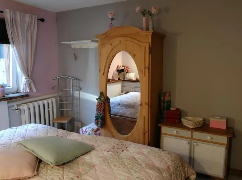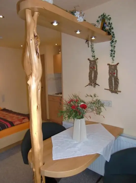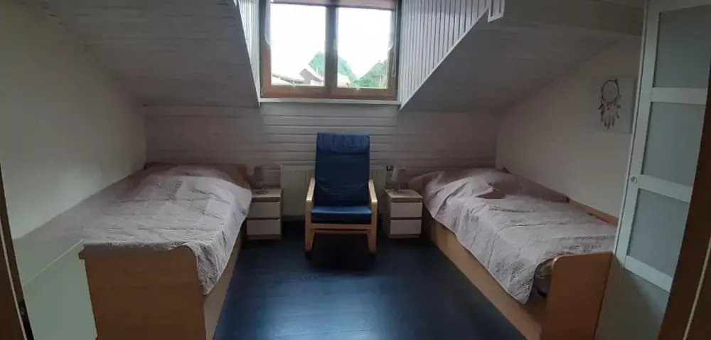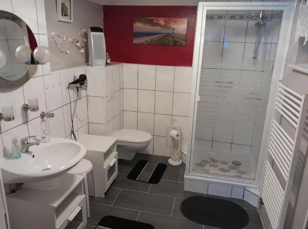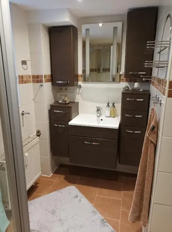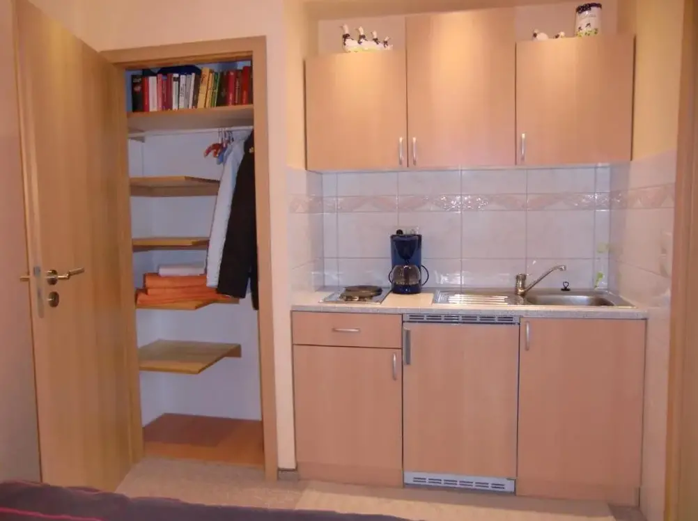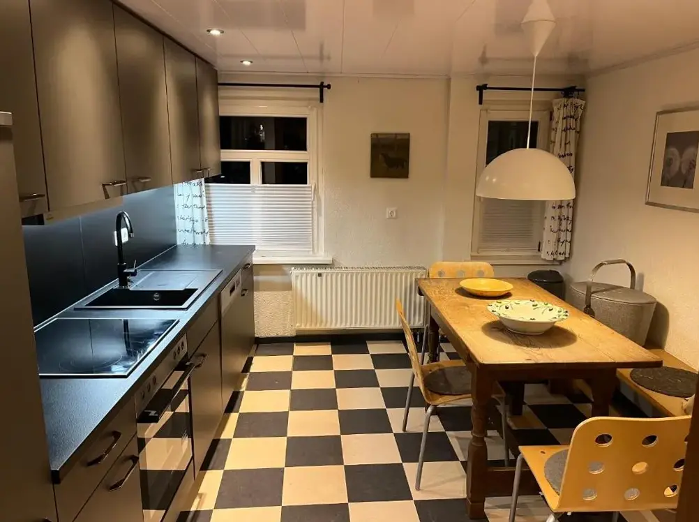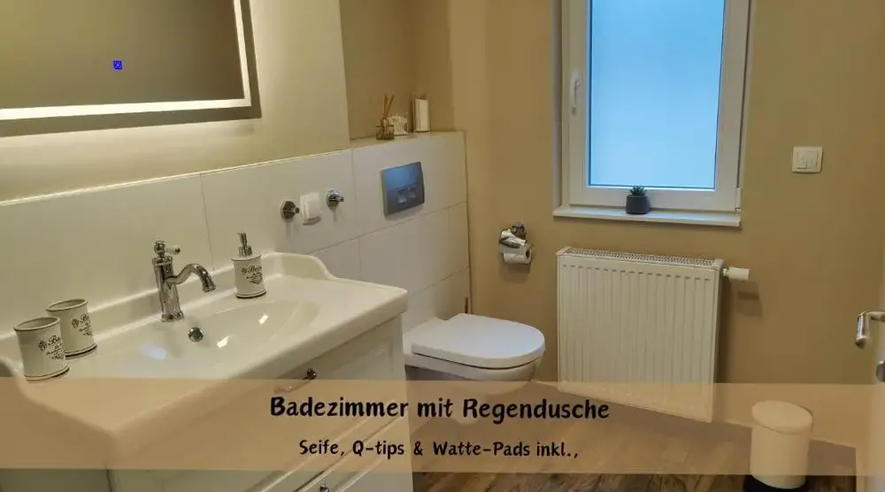 More information about Häuslers HerbergeFeWo ,,An der kleinen Wilde'' in Stolberg offers a spacious apartment featuring one bedroom and a living room. The property includes a fully equipped kitchen, a cozy fireplace, and a dining area. Modern amenities such as free WiFi, a kitchenette, and a coffee machine are available, along with a washing machine, TV, and free toiletries. An outdoor seating area allows guests to relax.