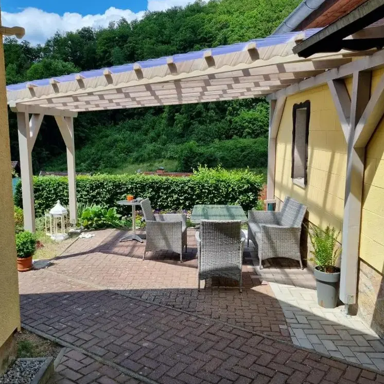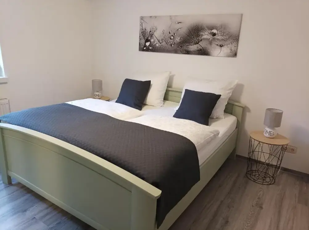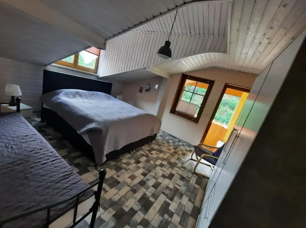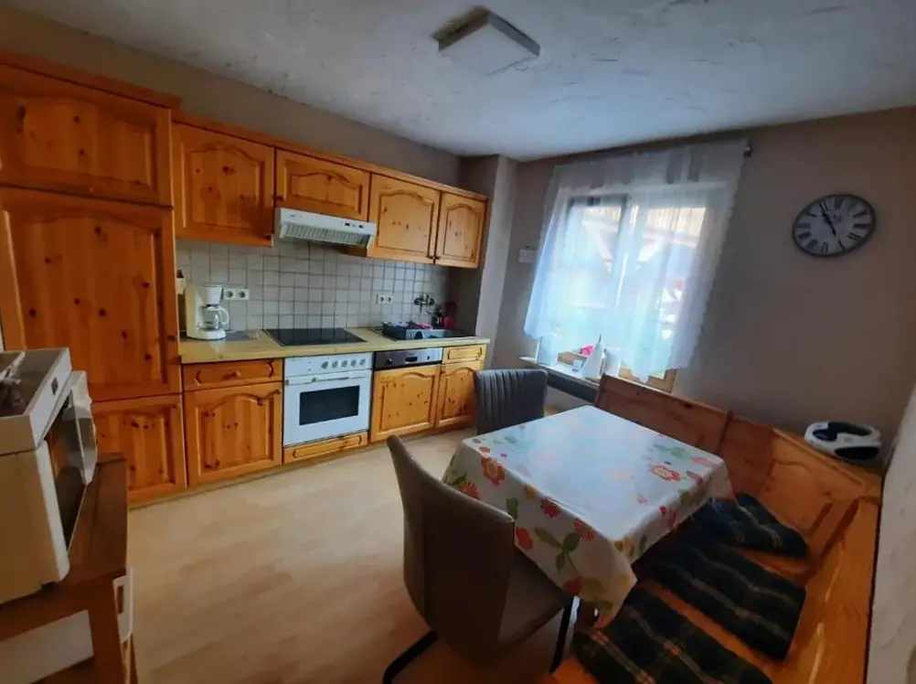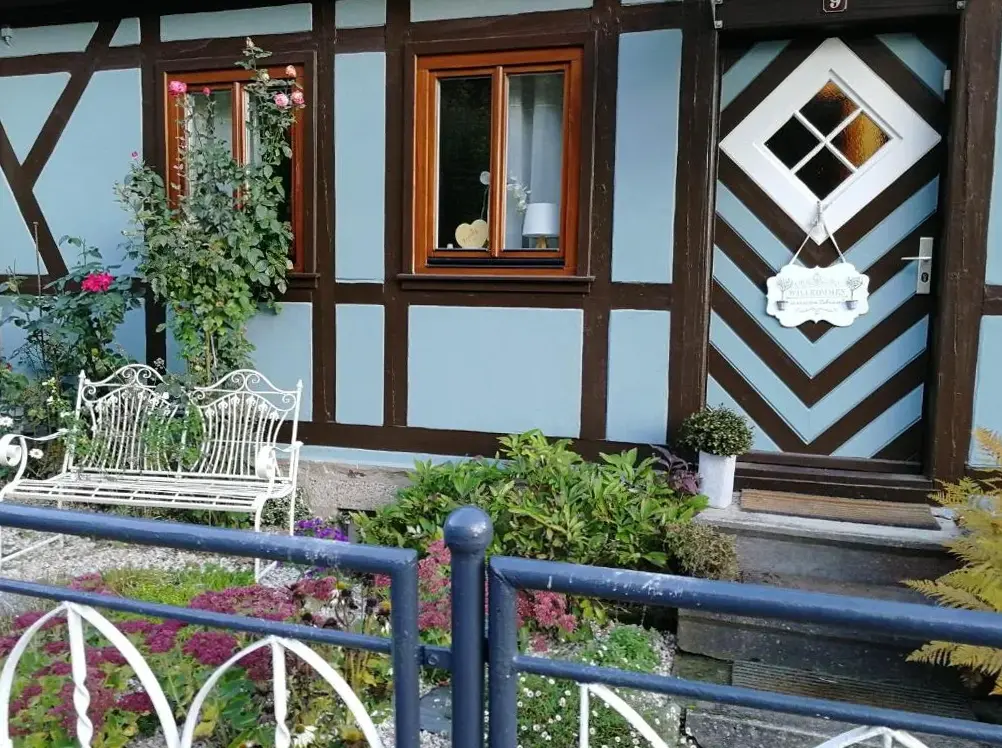 More information about Ferienwohnung Auszeit im SüdharzFerienhaus Fachwerk 99 is a charming holiday home located in Stolberg, Germany, offering comfortable accommodations with modern facilities. The property features a beautifully maintained garden and free WiFi, ideal for relaxation. It provides two bedrooms, a living room, and a fully equipped kitchen, along with a private bathroom and shower.