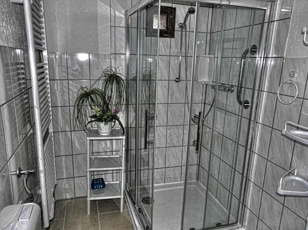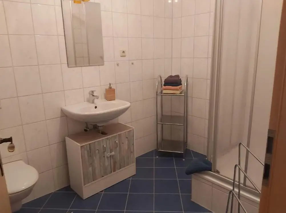 More information about Ferienwohnung Blick Thyratal ObergeschossHaus Maxi is a historic holiday home located in Töpfergasse 13A, 06547 Stolberg (Harz), Germany. This spacious property offers two bedrooms and two bathrooms, providing comfortable accommodations for guests. It includes modern amenities such as a flat-screen TV, a fully equipped kitchenette with refrigerator, oven, and dishwasher, along with a washing machine and dining area.