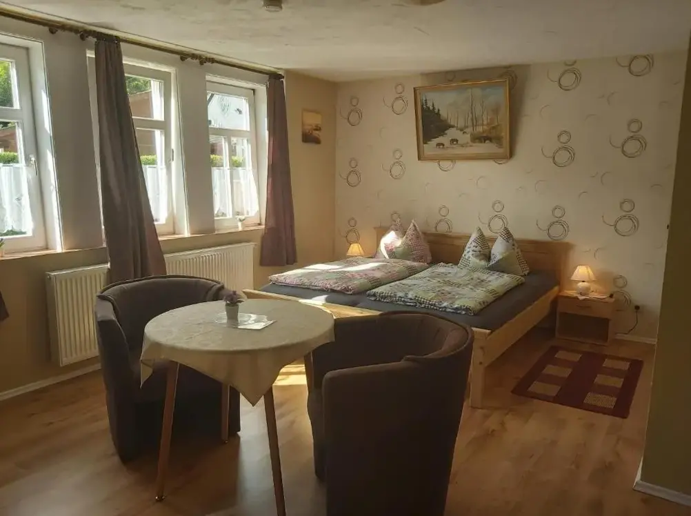 More information about Haus HubertusAlte Posthalterei in Stolberg i. Harz offers accommodations within a historic building, providing a distinctive ambiance. The property includes a sun terrace, garden, and seasonal outdoor swimming pool. Rooms feature private bathrooms, family-friendly options, and soundproofing, along with kitchenettes, TVs, and complimentary WiFi.