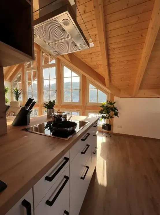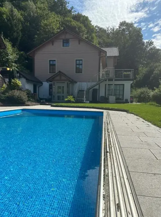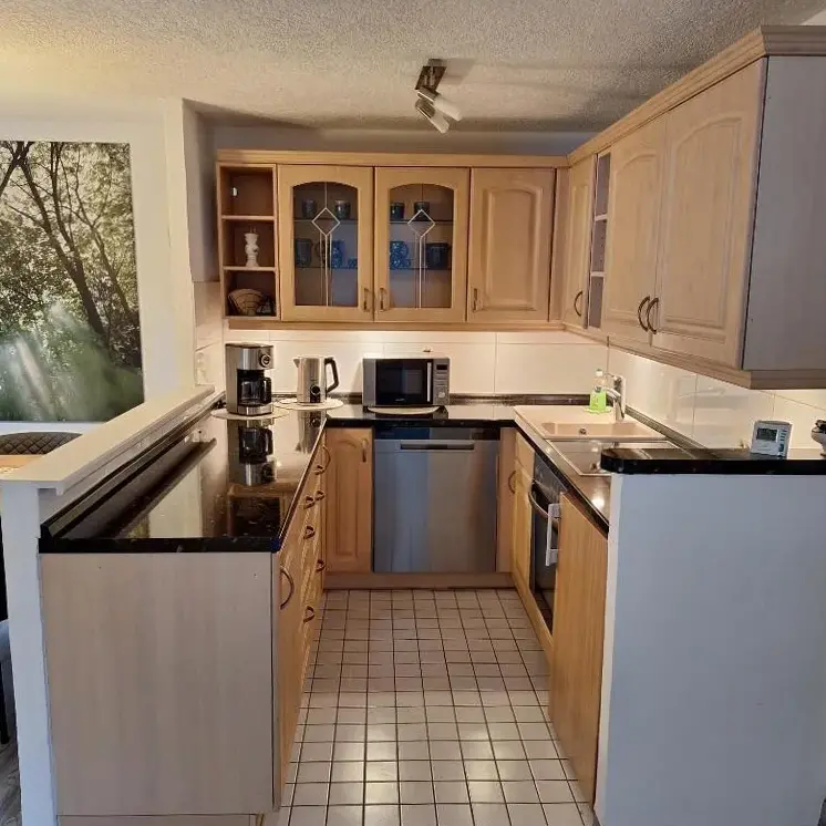 More information about Ferienwohnungen im HarzFerienwohnung Auszeit im Südharz in Stolberg provides a peaceful retreat with essential facilities including a swimming pool offering panoramic views, a sun terrace, and a garden. The apartment features one bedroom, a private bathroom, and a comfortably furnished living room. A modern kitchen is equipped with a refrigerator, microwave, dishwasher, and coffee machine.