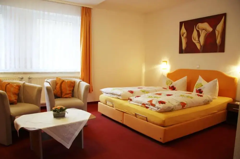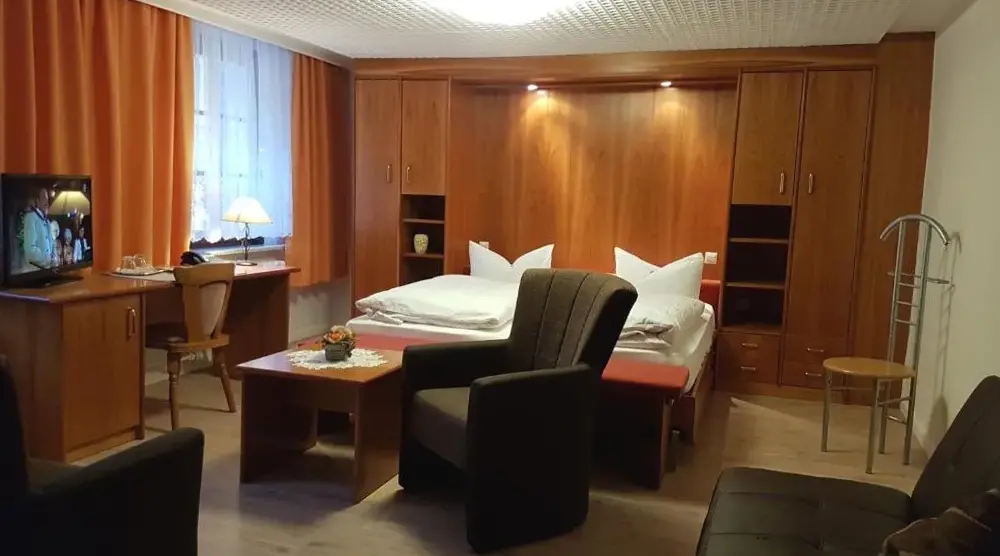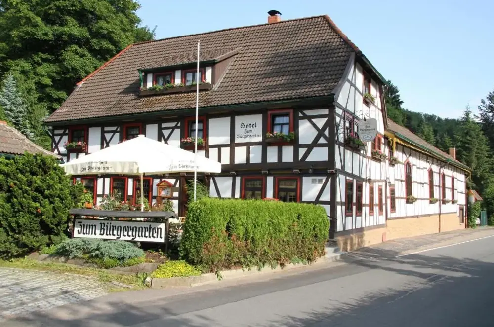 More information about BirkenhainHotel Zum Bürgergarten is a family-operated establishment located in Thyratal, Stolberg (Harz), Germany. Nestled within a historic building featuring traditional timber framing, the hotel offers accommodations with modern furnishings and select rooms showcasing authentic German countryside decor through woodcarvings and paintings.