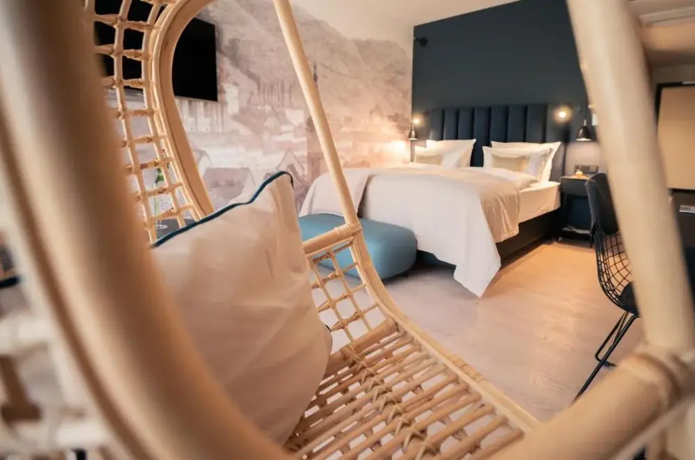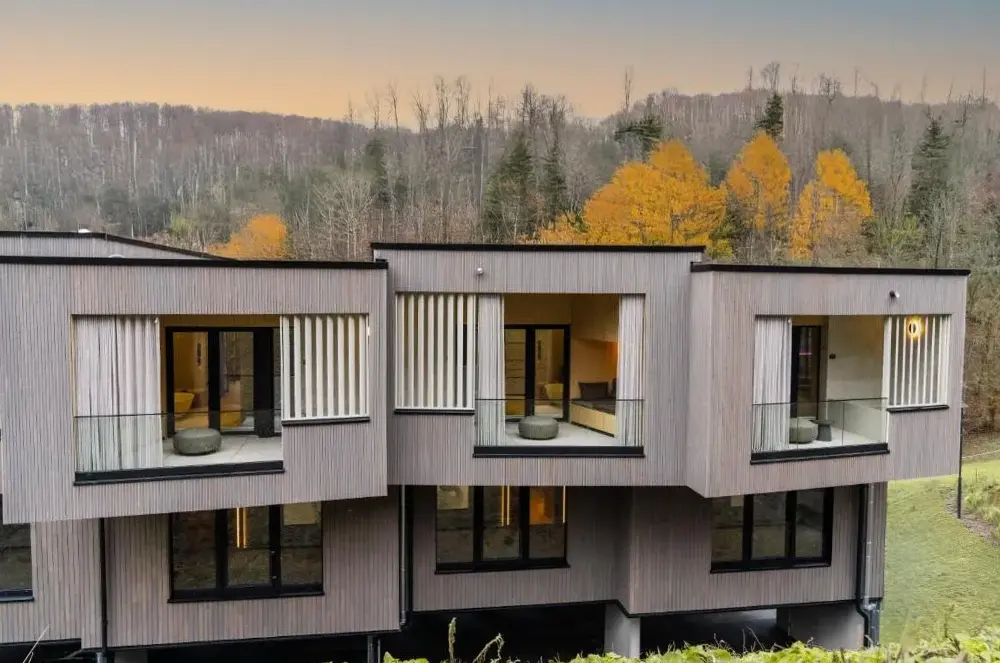 More information about Ferienhaus WaterstratHotel & Spa Suiten FreiWerk in Stolberg i. Harz provides comfortable accommodations featuring private bathrooms, bathrobes, and complimentary WiFi. Rooms include work desks, TVs, and seating areas for guest convenience. The facility boasts a sauna, fitness center, sun terrace, and restaurant serving German cuisine with vegetarian choices.