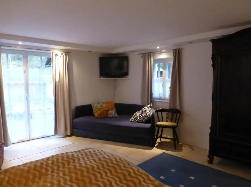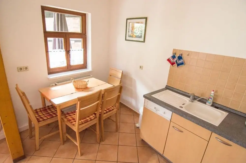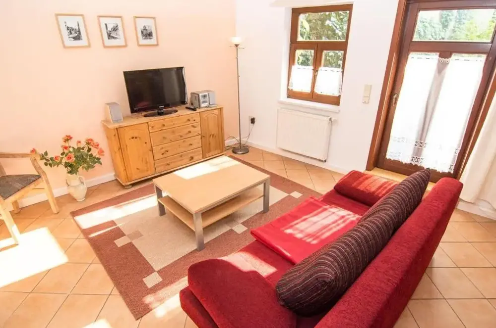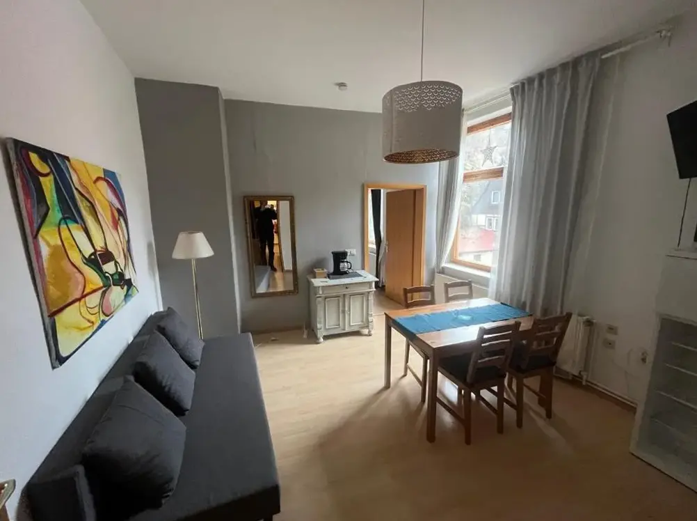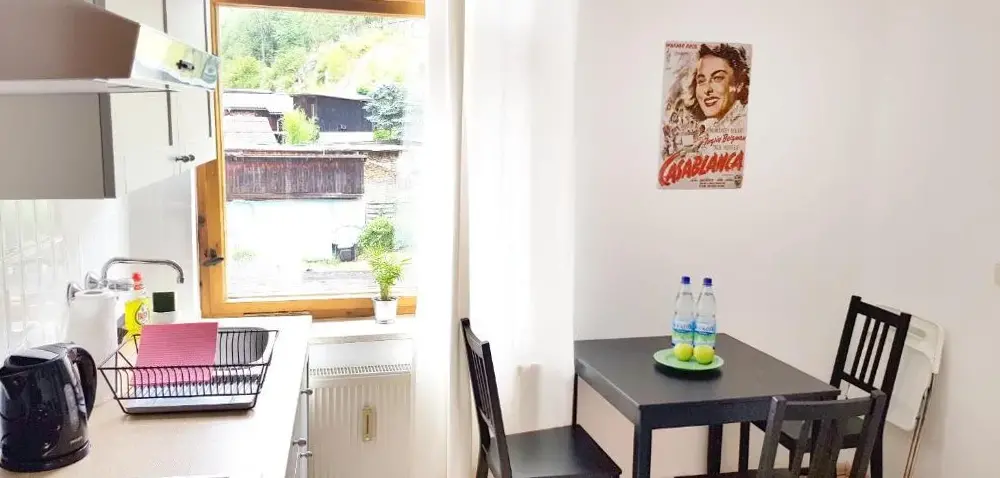 More information about Stolberger HofHaus Irmchen in Stolberg im Harz provides convenient access to local attractions including the Kyffhäuser Monument located 16 miles away and the Harz National Park situated 27 miles from the property. The accommodation features a fully equipped kitchenette, private bathroom, dining area, and living space with a sofa bed.