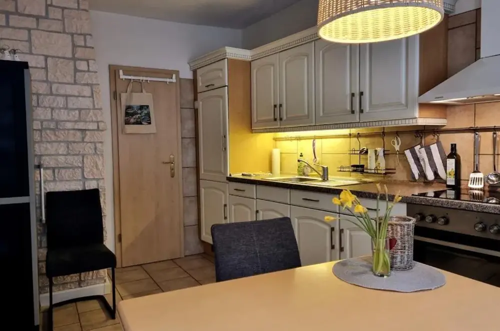 More information about Harz Stolberg FerienwohnungHaus Anastasia is a ground-floor apartment located in Stolberg (Harz), Germany, offering modern comforts and convenient access to local attractions. The fully equipped living space includes a kitchenette, private bathroom, dining area, and essential appliances like a refrigerator, microwave, and coffee maker. Guests can relax in the sauna and enjoy scenic views of the surrounding area.