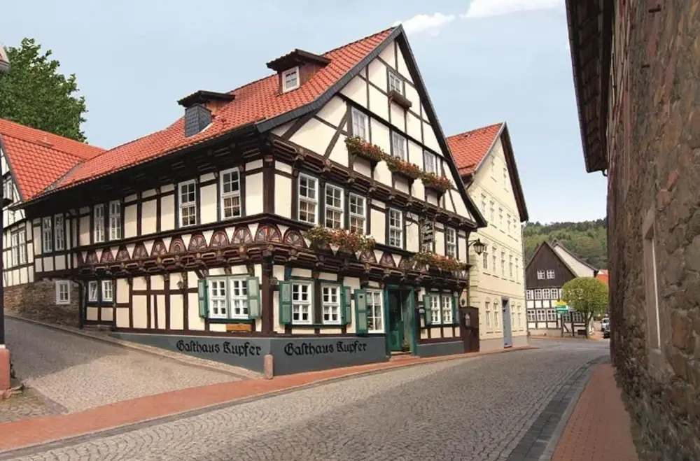 More information about Ferienhaus IngeGasthaus Kupfer is a 3-star historic hotel situated in Stolberg, Germany, within the Harz mountain region. This country-style establishment features a traditional restaurant serving local Harz cuisine and provides free Wi-Fi throughout its premises. Guests enjoy access to complimentary parking facilities and can savor a substantial breakfast buffet daily.