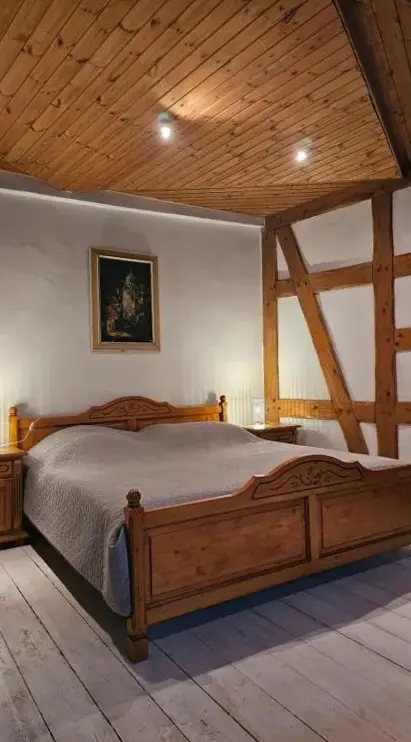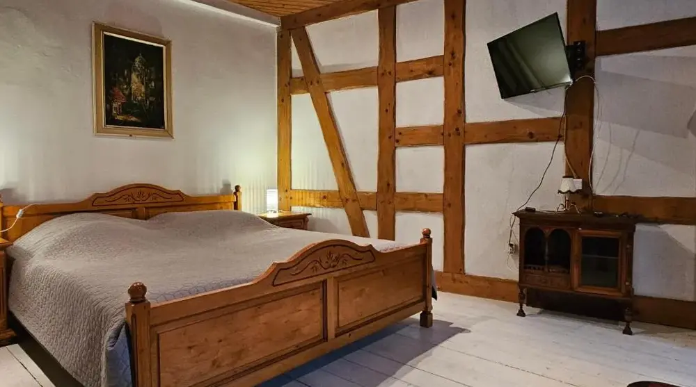 More information about Art Apartment - HarzHotel Zum Kanzler is a 400-year-old timber-framed hotel situated in the heart of Stolberg, a historic town within the southern Harz Mountains of Saxony-Anhalt. Located on the scenic market square, directly opposite the town hall, this establishment provides cozy accommodations with options featuring views of the bustling marketplace or serene surrounding forests.